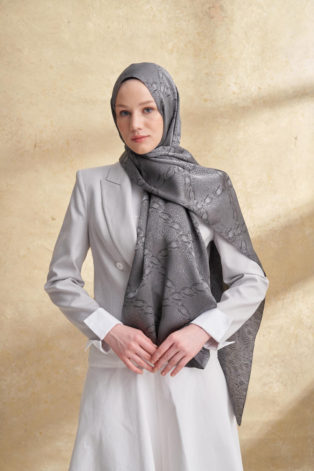 JOSE JAKAR CHAIN DESEN ŞAL - GRİ - FÜME